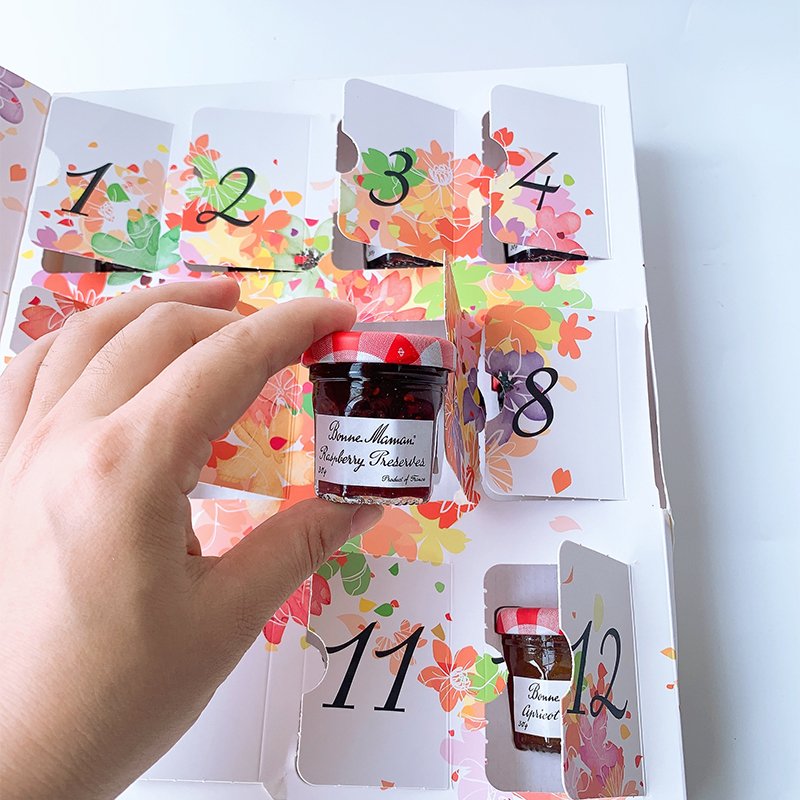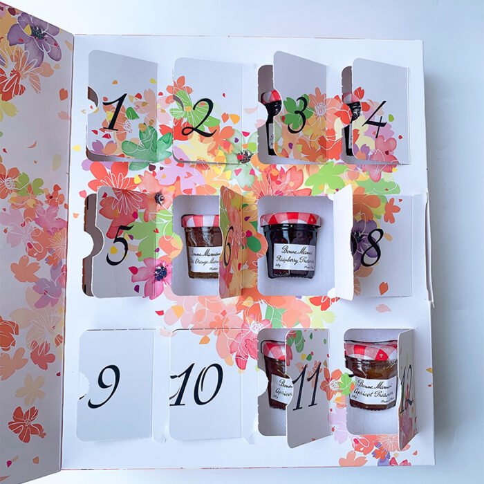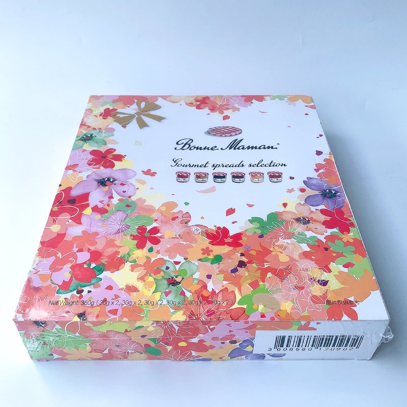 Indulge in the artisanal quality of Bonne Maman, France’s beloved jam maker. This elegant gift set includes 12 mini jars featuring 6 classic flavors, beautifully presented in a premium box – perfect for gifting or personal enjoyment.
